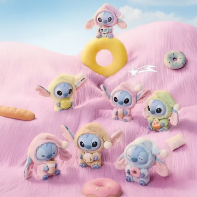 Each box contains a surprise assortment of 3–5 limited edition Stitch collectibles, such as plushies, pins, and art prints.
